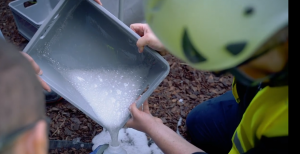 W celu uniknięcia skażenia środowiska do testowego układu podłączono system dozujący środek zapobiegający spienianiu się mieszaninie. Podczas całego testu zużyto około 30 ton wody oraz ponad 800 litrów środka pianotwórczego!